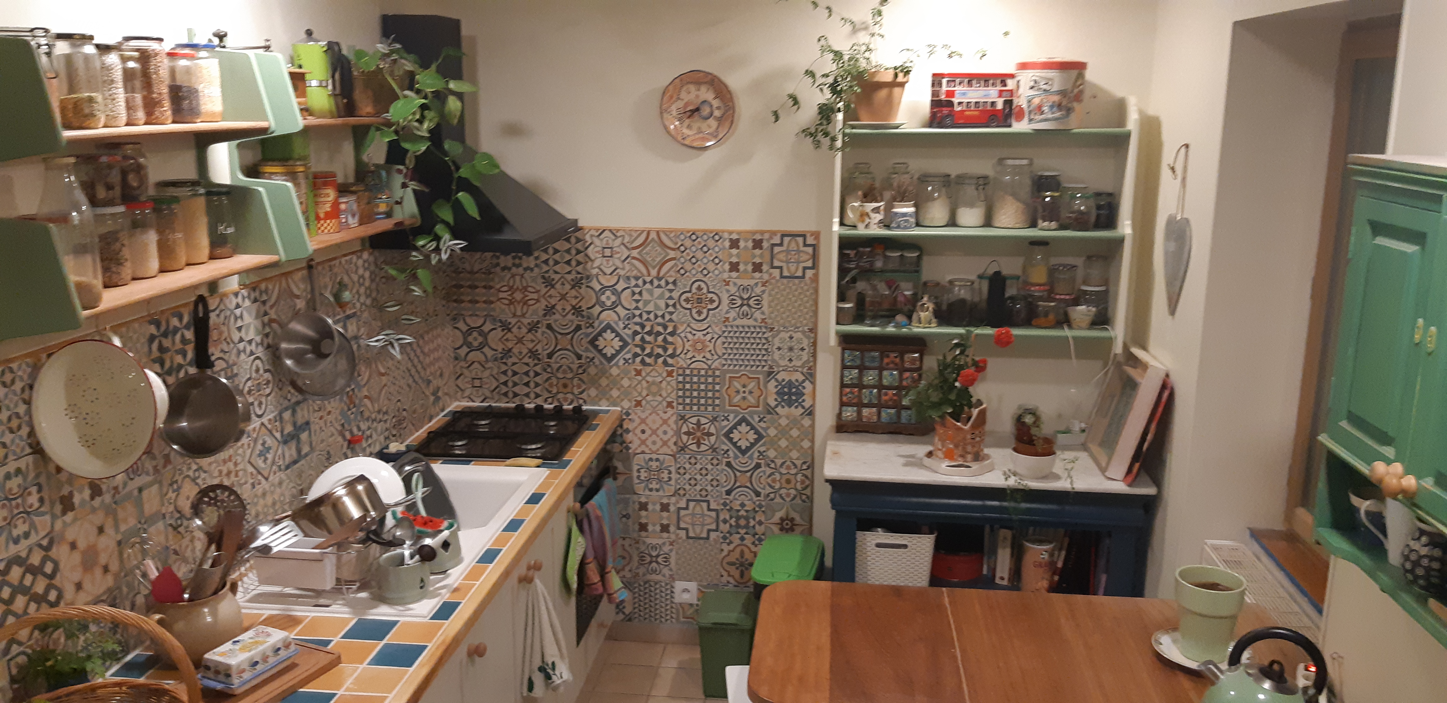 I won't talk about the hub... my house and the mountain of improvements that happened here, a new septic tank - very glamorous - the barn floor concreted over, the kitchen refurbished (above), the vine trained, subsidies from the government for 'la transition écologique' partially financing a wood-pellet boiler, insulation, double-glazing. I guess the latter isn't improving the national debt but bless, bless, bless! I won't talk about the solidarity of neighbours, ready to lend strong arms and know-how. I won't mention the many impromptu meals shared in the garden, the music sessions with Pierre on the harmonica, pottery and guitar lessons in Figeac. Bless the gentle, friendly people of the Lot.